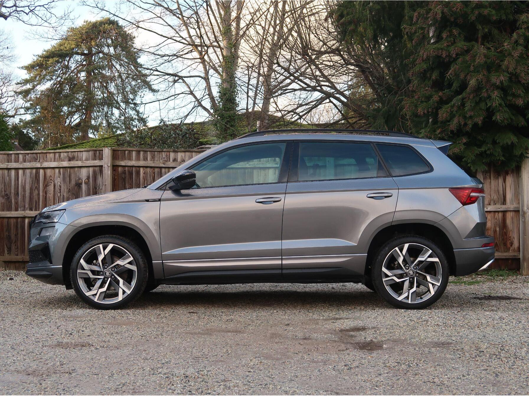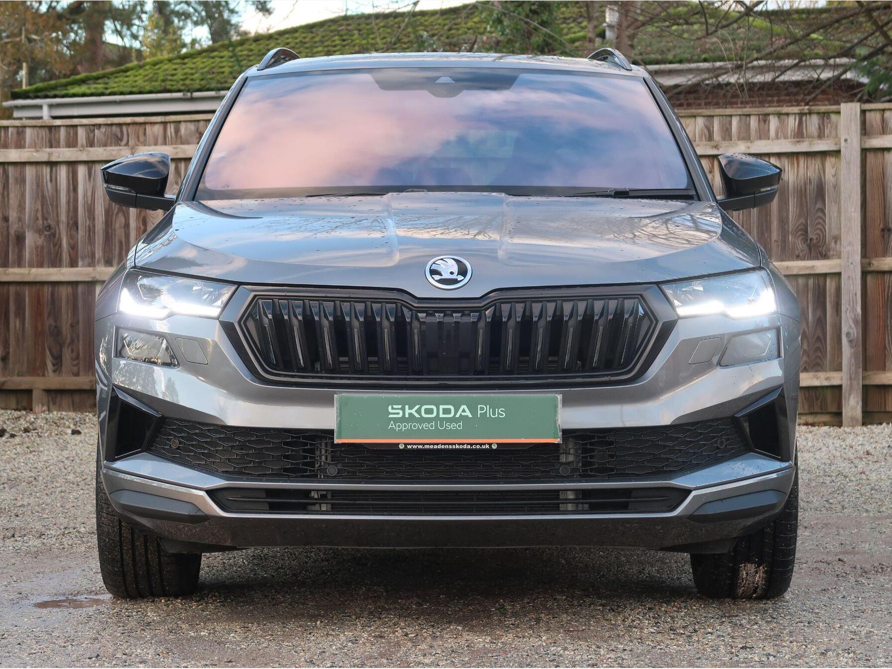 **We are now entering the busiest period of the year, please contact us to arrange an appointment and avoid disappointment** This 2025 Skoda Karoq TSI SportLine Edition presents a superb opportunity, having been owned by just one careful keeper from new and carrying Skoda manufacturer approval. This stylish SUV is powered by an efficient 1.5 litre Euro 6 compliant petrol engine, offering a responsive drive. The SportLine Edition trim level ensures a premium feel, complemented by a host of desirable features. Inside, you'll find a 3 spoke leather sports multi-function steering wheel that is both heated and includes steering wheel heating for those colder mornings. The convenience of a light and rain sensor, coupled with an auto-dimming rear view mirror and automatic headlights, enhances your driving experience. Nationwide Delivery Available - Thinking of financing your next car? Why not use our 9.9% APR PCP Finance options. This offer is further enhanced by a £250 Finance Deposit Contribution and a Service Plan to include 2x Services for only £99! Manufacturerâs Warranty Until March 2028 Extras Over Standard Spec Inc: Graphite Grey Metallic Paint, Spare Wheel. Why to buy from Meadens: 14 Day Money Back Guarantee | Official SKODA Warranty â Can be used at any SKODA Dealer | Top Level AA Roadside Assistance | MOT and Serviced (where required) | Part Exchange Welcome | HPI Clear | 2 Keys Minimum | Nationwide Delivery Available | Prices Checked Daily - Ensures the most competitive prices | Personalised Video Walkaround | No Additional Fees â What you see is what you pay. If you have any questions regarding history, condition, or specification of this vehicle, please get in touch with a member of the sales team.