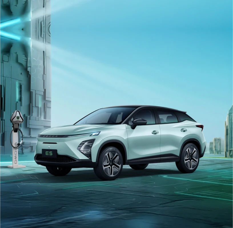 The OMODA E5 combines futuristic aesthetics with purposeful design. Its bold silhouette, distinctive front grille, and integrated lighting elements create a commanding presence on the road. Every curve and contour has been crafted to reflect a new era of automotive design – stylish, forward-thinking, and undeniably modern.