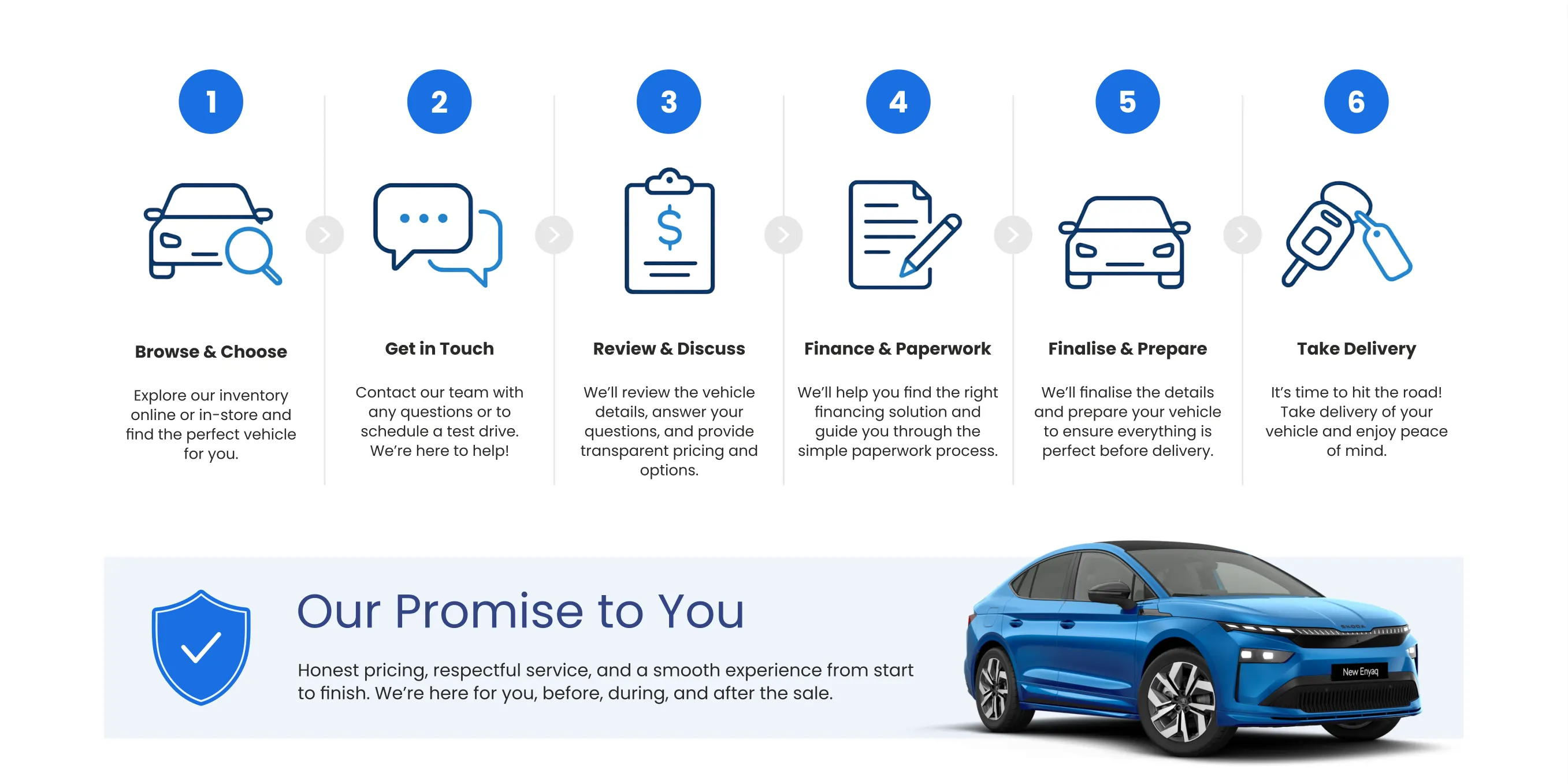 Our six-step process helps you understand exactly what to expect when you buy from us.
